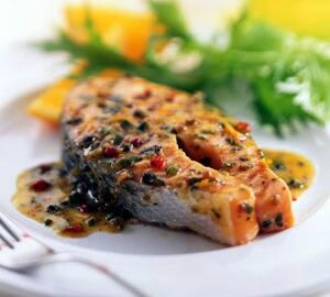 Salmon with Orange and Peppercorn Butter Sauce