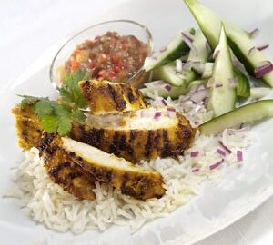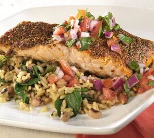Blackened Cajun Salmon with Seasoned Rice and Fresh Salsa